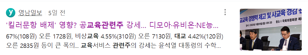 지금부터 교육 관련주에는 어떤 종목이 있는지 정보를 확인해 보시기 바랍니다.