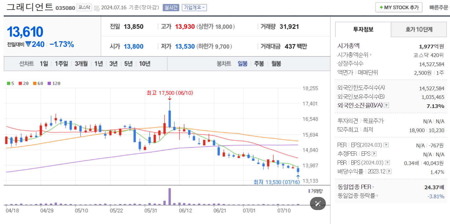 야놀자 상장 관련주 : 그래디언트(035080)