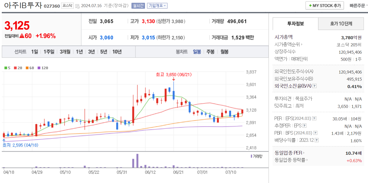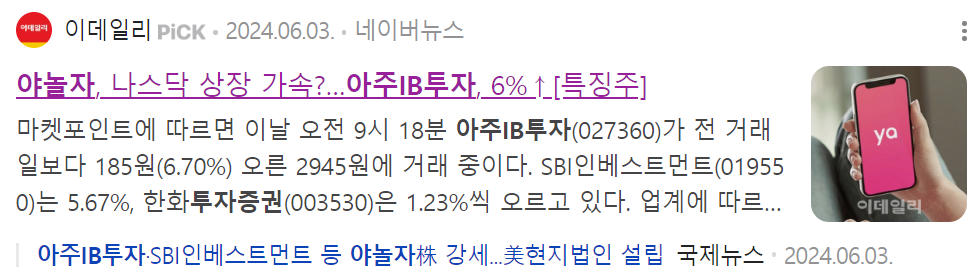 야놀자 상장 관련주 : 아주IB투자(027360)