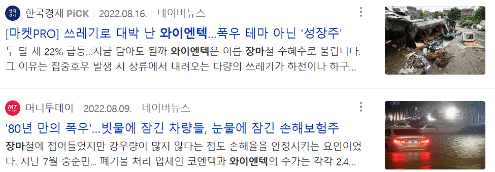 장마 태풍 관련주 : 와이엔텍