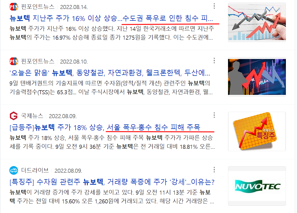 과거에도 수도권 폭우나 홍수 피해가 발생하면 주가가 상승하여 장마 태풍 관련주로 알려져 있습니다.