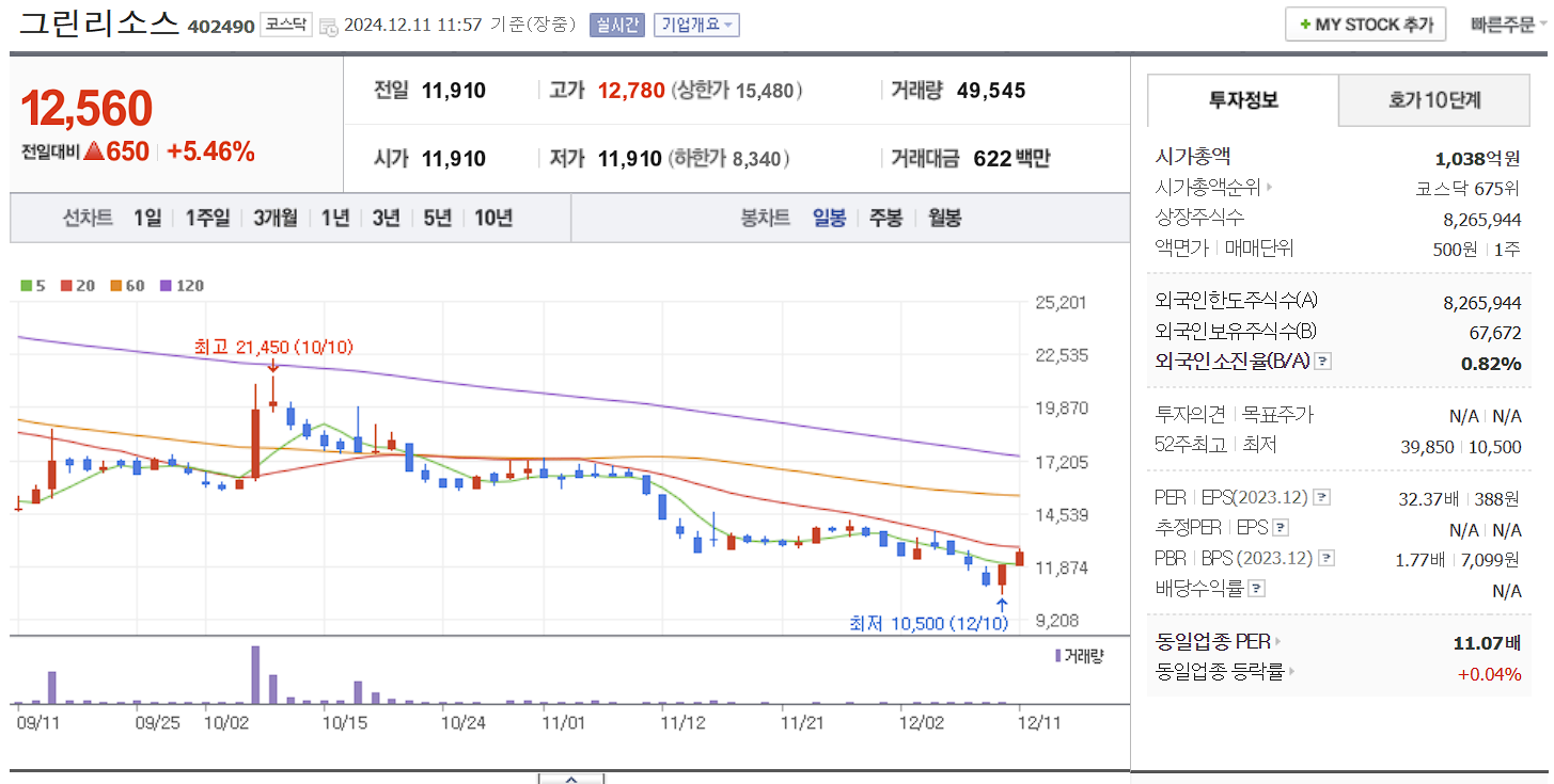 LK-99 발표 당시 관련주로 급등했으며, 초전도체 기술 상용화 시 성장 가능성이 주목됩니다.