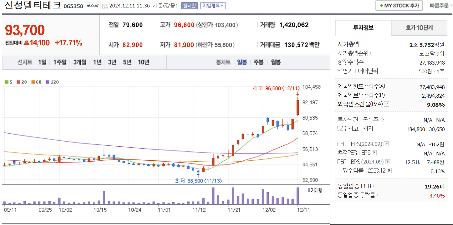 1. 신성델타테크 (065350)(초전도체 대장주)