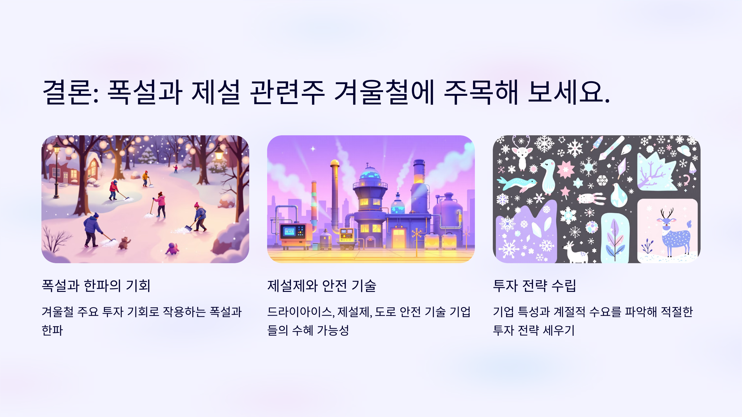 결론: 폭설 제설 관련주 겨울철에 주목해 보세요.