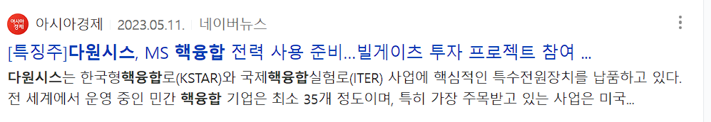 지금부터 핵융합 관련주에는 어떤 종목이 있는지 정보를 확인해 보시기 바랍니다.