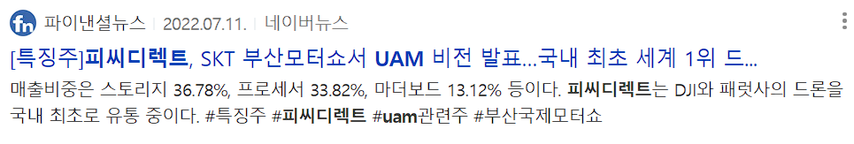 UAM 관련주 : 피씨디렉트(051380)